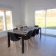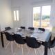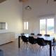 Pièce principale : Cuisine (cuisine équipée : réfrigérateur/congélateur, plaque à induction 4 feux, lave-vaisselle, four, cafetière, grille-pain, bouilloire, mixeur/hacheur, presse-agrumes, etc.), Salon (canapé, TV, etc.), Salle à manger (tables, chaises, etc.) ;