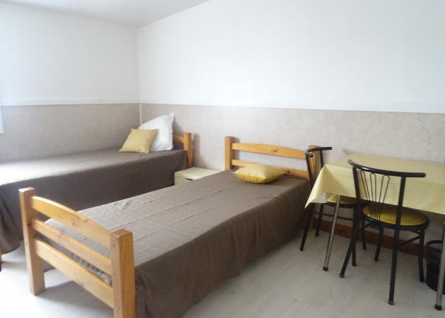 -2 chambres , 2 avec 1 lit une place, grand bureau, rangement, table, lavabo individuel dans chaque chambre, internet