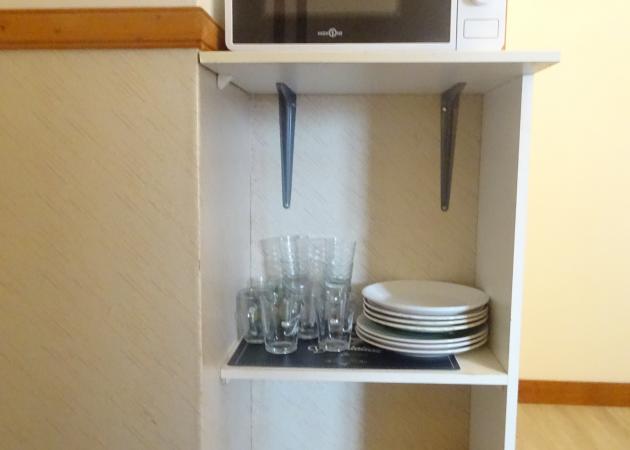 -coin cuisine (évier, plaque chauffante, micron onde, vaisselle) et douche et wc en commun
