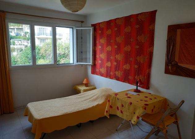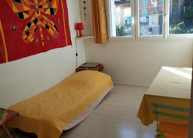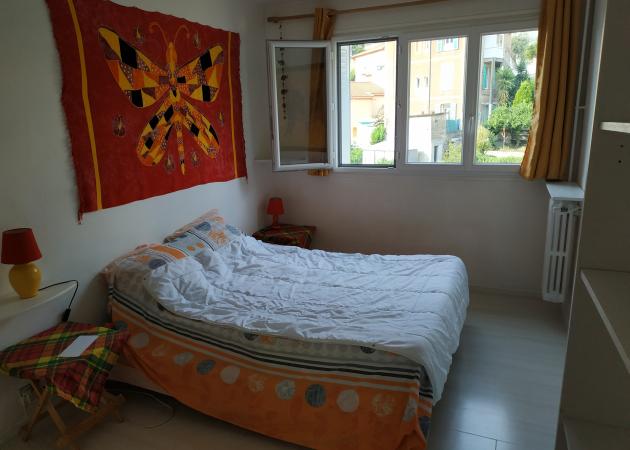 A partager en colocation avec deux autres personnes (un jeune homme de 24 ans et une femme de 56 ans présente 4 nuits par semaine et absente lors des vacances scolaires) dans un appartement T3 situé au 7éme étage d’un immeuble sécurisé avec ascenseur, 1 chambre avec 1 lit simple, très calme (fenêtre en double vitrage), ensoleillée, lumineuse, bien chauffée (chauffage collectif compris dans les charges) donnant sur les collines de Nice ouest. Placard dans la chambre (espace penderie et étagères) , étagères, table et chaise.