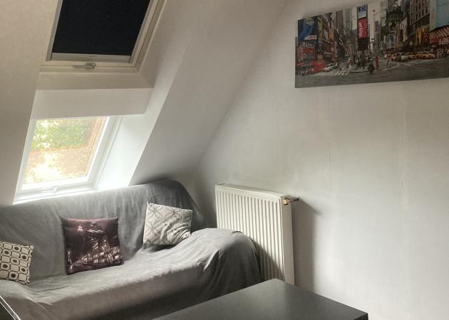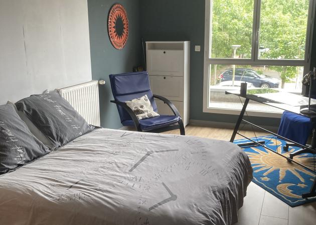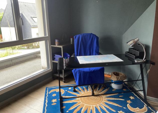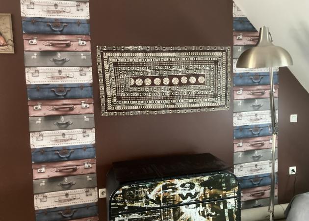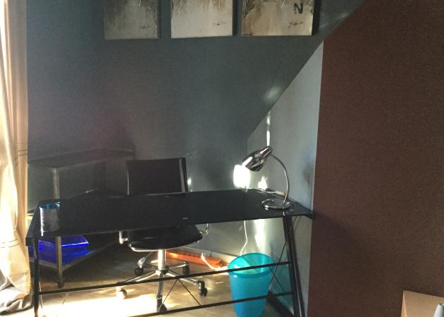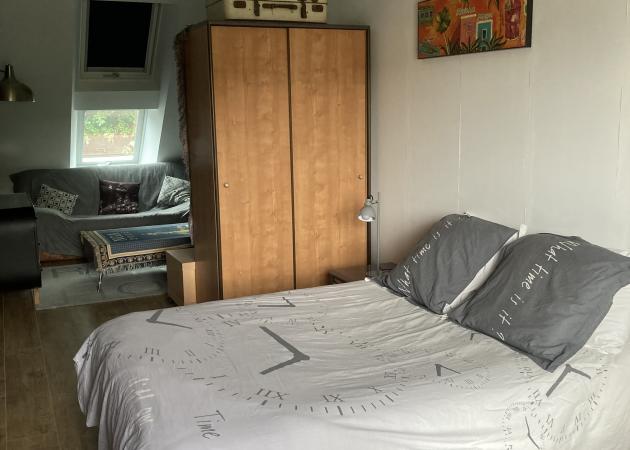 Au calme à l’étage de la maison ,grande chambre traversante équipée d’un lit 140 ,armoire, bureau , canapé