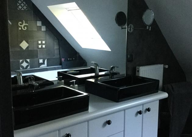 Salle de bain ( 2 vasques / douche ) et wc séparé ; parfois à partager avec autre locataire.