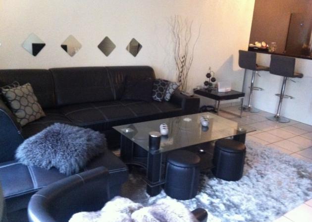 Une cuisine entièrement équipée, avec four,micro-onde,frigo.. ouverte sur le séjour séparer d'un bar. Séjour avec un très grand canapé d'angle convertible, TV ecran plat satellite, DVD, Wi-Fi. Draps et serviettes founi(e)s.