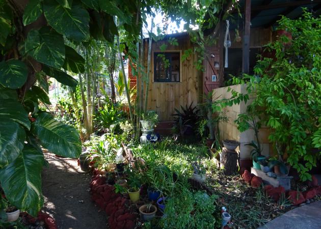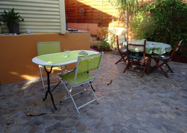 - En extérieur une grande terrasse ombragée, 2 varangues - est, ouest-, de 2 jardins exotiques arborés, fleuris avec des entrées indépendantes.