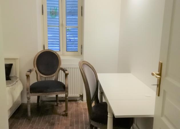Au rez-de-chaussée, ambiance très calme donnant sur cour pavée et arborée. Doubles vitrages.