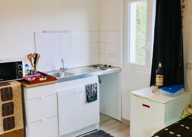 Vous disposez d une cuisine équipée, un canapé, un lit simple, un lit double et un rangement, tous réunis en un seul meuble ! Une très belle et grande salle de bain privée avec douche et toilettes suspendues.