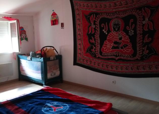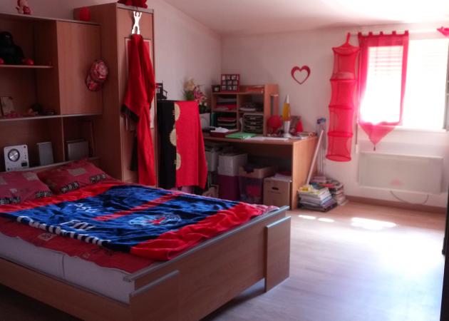 Chambre meublée avec lit 2 places + armoire + bureau + télé + lit bébé (+50€/mois si bébé ou enfant).