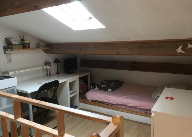 Chambre avec coin douche et lavabo individuel.Chambre mansardée, sous les toits, adaptée à un profil féminin.