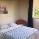 La chambre est équipée, d'un lit de 1,40 m, d'une lampe de chevet, d'un portant, d'un meuble de rangement et d'une armoire.