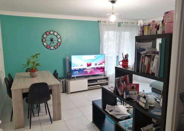 L'appartement est composé d'un séjour donnant sur terasse, une cuisine toute équipée, une salle de bain et un wc à partager.