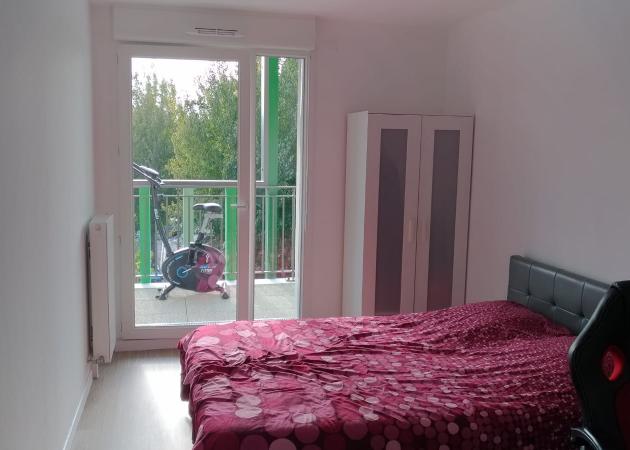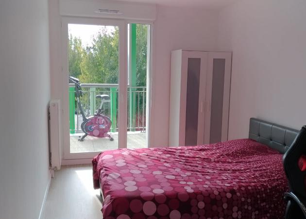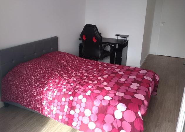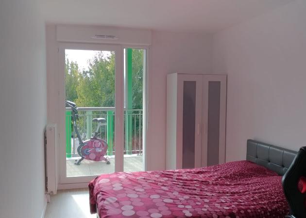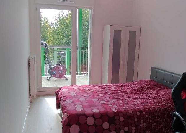 Très jolie chambre lumineuse de 13 m2 avec un grand lit pour 2 dans un appartement tout neuf avec balcon et salle de bain privatif dans un quartier très calme et proche de toutes les commodités et universités.