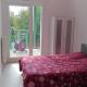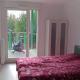 La chambre a sa propre salle de bain et donne accès au balcon avec vu dégagée, une armoire , un bureau.