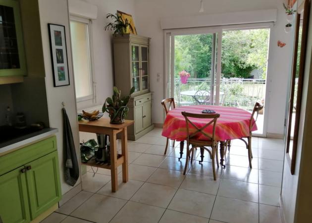 Ma maison est suffisamment grande pour accueillir un ou une locataire. Le coin cuisine et salon donne sur le jardin et est baigne de lumière.