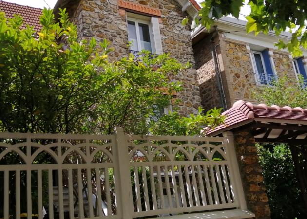La maison est située dans une rue pavillonnaire et comporte un jardin de 400 m2 environ. Elle est située à moins de 10 mn à pied de la gare (ligne C du rer) et a 25 mn du centre de Paris.