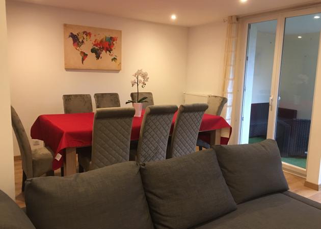 Pièce de vie commune comprenant une partie salle à manger et un coin salon pour se détendre ensemble : écran plat, internet (fibre) - billard pour partager des moments inoubliables.
