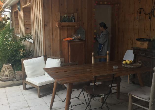 Je travaille de chez moi dans mon bureau au fond du jardin .