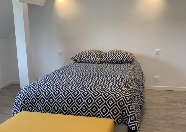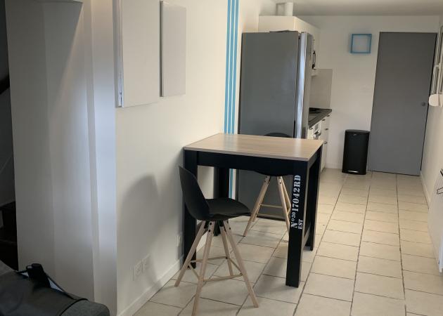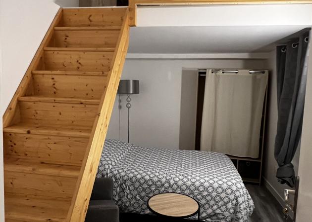 A l’étage deux chambres lumineuses et spacieuses dont l’une avec mezzanine bientôt disponible, la deuxième chambre est occupée par un jeune salarié