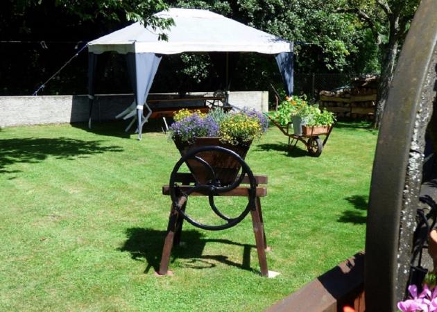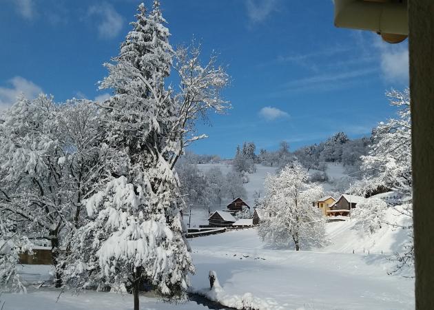 Parking clos,espace vert avec salon de jardin ,barbecue à coté d'une rivière à truites en été.