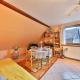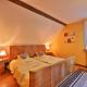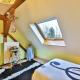 2 chambres à coucher,une avec 2 lits accolés pour deux personnes,une avec 1 lit pour une personne,lit d'appoint si besoin, canapé clic-clac,salon,télé,radio,lecteur dvd,documentation,