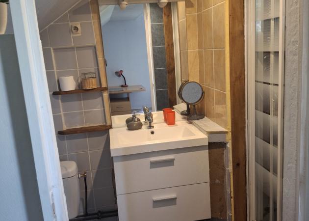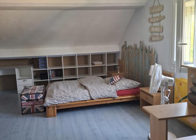 Chambre meublée avec ses toilettes privatives bureau un grand lit. Accès à toutes les parties communes. Parking gratuit clôturer et sécurisé. Proche des commodités et 15 minutes du centre ville en voiture.