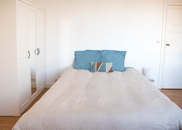 Partie privative : une chambre avec lit double queen size 160x200cm, armoire/penderie, chevet, internet wifi.