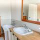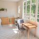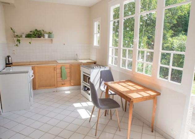 - cuisine toute équipée avec plaques électriques, réfrigérateur-congélateur, four et four micro-ondes, bouilloire, grille-pain, lave linge séchant et fer à repasser.