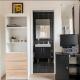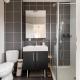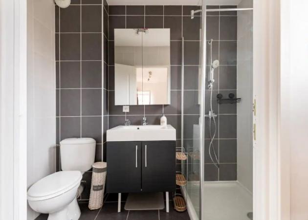 Salle de bain dans la chambre avec douche, lavabo et wc privé.