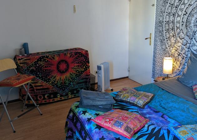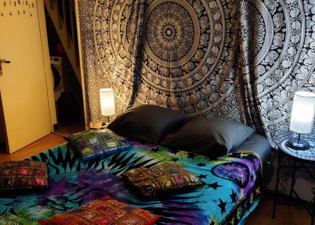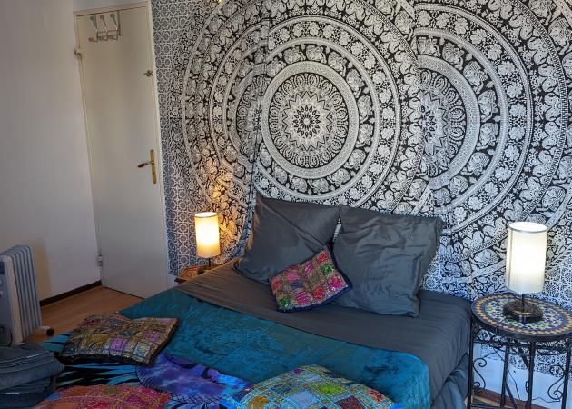 Chambre spacieuse avec vue sur les Alpes, au dernier étage d'une résidence calme et proche du centre-ville et des transports en commun.