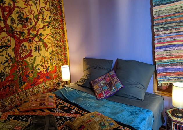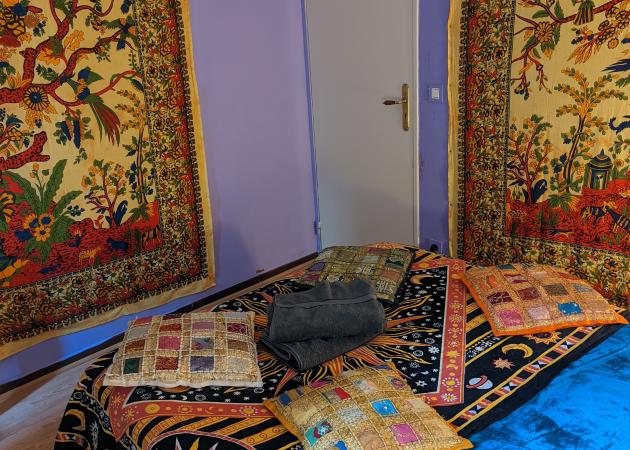 Salle de bains / WC partagés, cuisine équipée et salle à manger partagées.