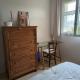 Chambre au 1er étage, grand lit, bureau, placard double, étagères.