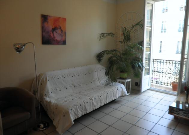 Dans appartement de 45 m2 situé en plein centre-ville, à 150 m du tram et de l'avenue J. Médecin, à 5 min de la gare, 6 min du marché des producteurs et à proximité de tous les commerces. Chambre meublée à louer pour femme ou étudiante (fille uniquement) composée de : un lit double, 1 table de chevet, 1 lampe de chevet, 1 bureau, 2 étagères, 1 chaise (+1 chaise pliante), + tringle et cintres derrière le rideau + 1 table à repasser.