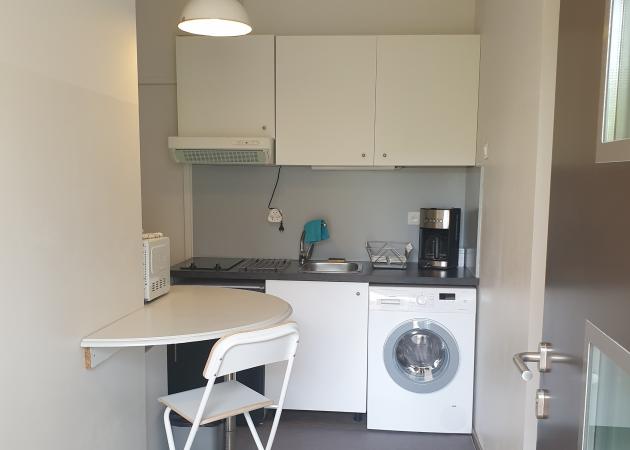 Cuisine équipée à neuf, salle de bains avec toilettes, lave-linge