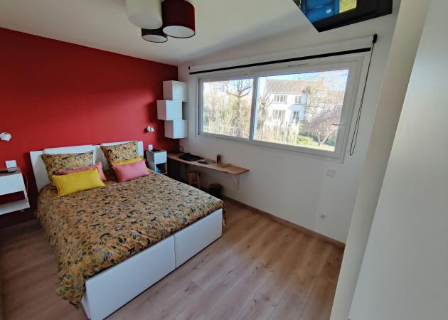 Vous partagez avec ma compagne et moi le premier étage de la maison (accès par escaliers), la buanderie au rez-de-jardin, le jardin, et tous les équipements (frigo, four, plaque de cuisson, lave-vaisselle, lave-linge et sèche-linge, fer, TV, wifi). Vous avez une chambre privée. D'autres personnes peuvent occuper la seconde chambre privée. (Attention pour les allergiques : chat dans la maison).