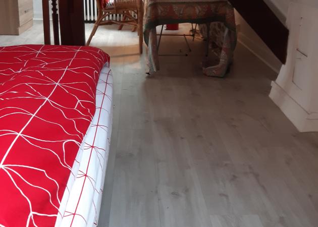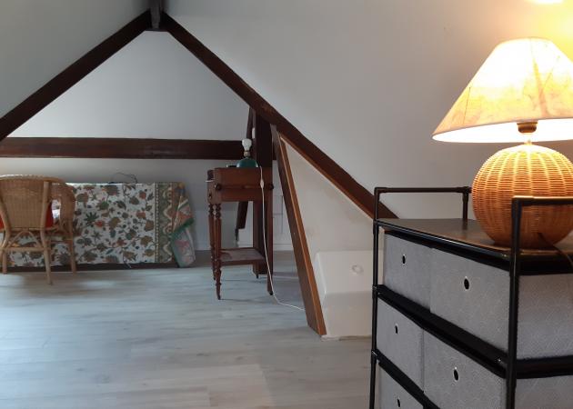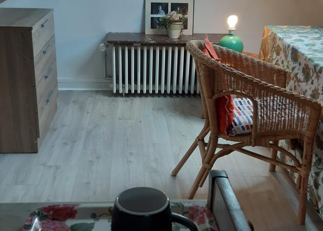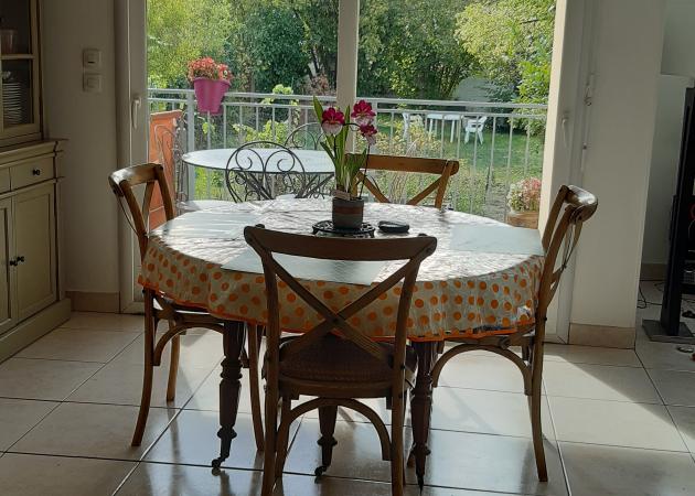 Ma maison est suffisamment grande pour accueillir un ou une locataire. Le coin cuisine et salon donne sur le jardin et est baigne de lumière.