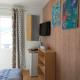 . La Chambre est équipée d'un grand placard dressing, est équipé d'une TV, d' un petit frigo, d'un micro onde, d'une théière et d'une machine Dolce gusto (café,chocolat, thé) d"un petit bureau, salle de bain avec WC , (a partager avec la chambre d'à côté ), dans le garage il y a un congélateur à votre disposition .