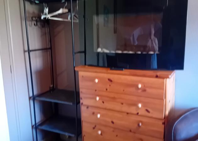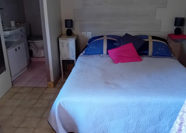 Chambre chez l'habitant, un lit de 140 . Une salle d'eau ,lavabo et wc. Une table avec chaises, un micro onde, une cafetière, bouilloire, couverts,