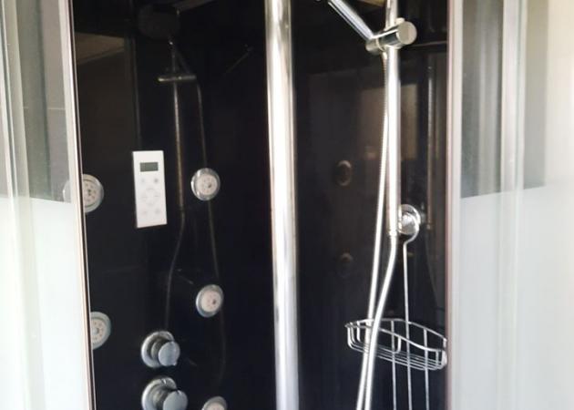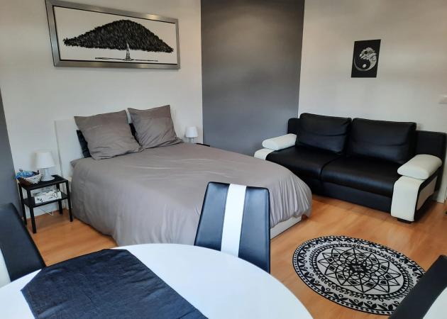 Dans la grande pièce à vivre, décorée style moderne, vous avez un lit 2 places, un autre d'appoint pour une 3ème personne.