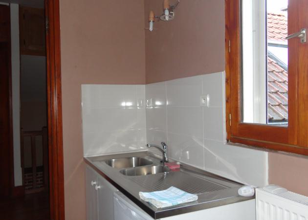 Un coin cuisine se compose d'un micro-ondes, frigo et évier pour les 2 chambres.