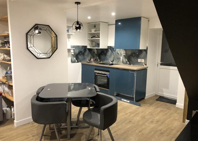 La maison comprend un séjour de 34m² avec salon, TV, internet, cuisine ouverte (toute équipée : frigo, four, lave-vaisselle, four micro-onde, vaisselle, casseroles, table + 4 chaises…) et un espace coworking pour des moments studieux ou simplement pour se retrouver ensemble. Vous avez également à votre disposition un grand jardin ainsi qu’un verger, avec un composteur la possibilité de cultiver vos légumes