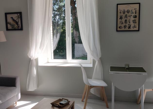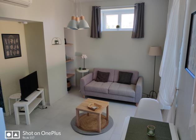 - 1 pièce à vivre avec espace cuisine entièrement équipée, un espace repas et un salon cosy avec canapé 2 places.