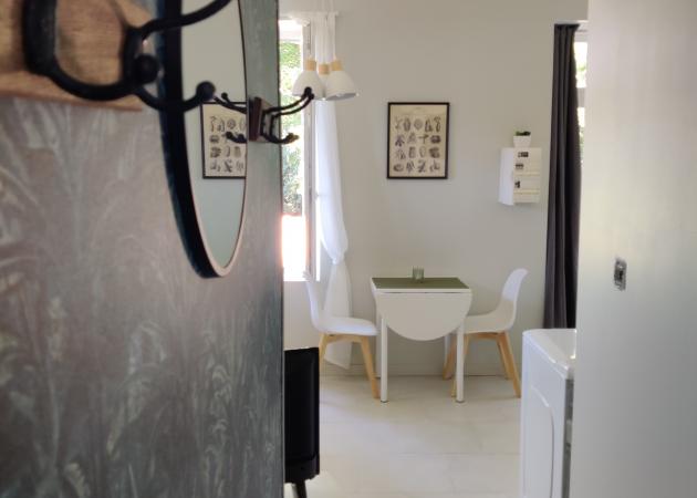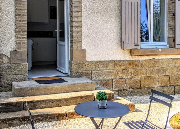 Le logement a sa propre entrée, indépendante sur le derrière de la maison ainsi qu’une terrasse privative.