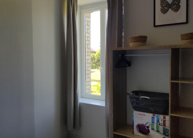 - 1 chambre séparée (non fermée), équipée d’un lit 140x190 avec rangement et une salle d’eau avec douche à l’italienne et WC.