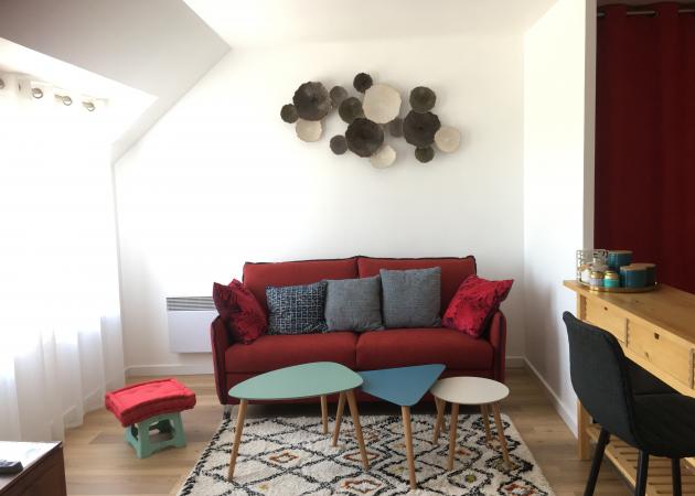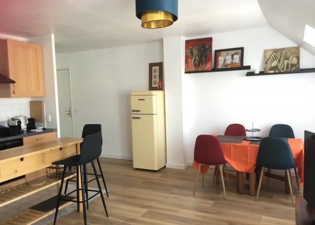 Cet appartement est équipé d'une cuisine tout équipée (réfrigérateur, four, four micro-ondes, plaque de cuisson vitrocéramique, bouilloire, machine à café, vaisselle et ustensiles de cuisine), séjour avec canapé-lit pour 2 personnes, chambre à coucher lit 2 places 160x200 (avec draps et oreillers, penderie et étagères pour ranger vos affaires), chambre à coucher avec 2 lits 1 place 90x200 (avec draps et oreillers penderie et étagères pour ranger vos affaires), d'une salle de bains (avec gel-douche, shampoing, serviettes et sèche-cheveux) et des toilettes.