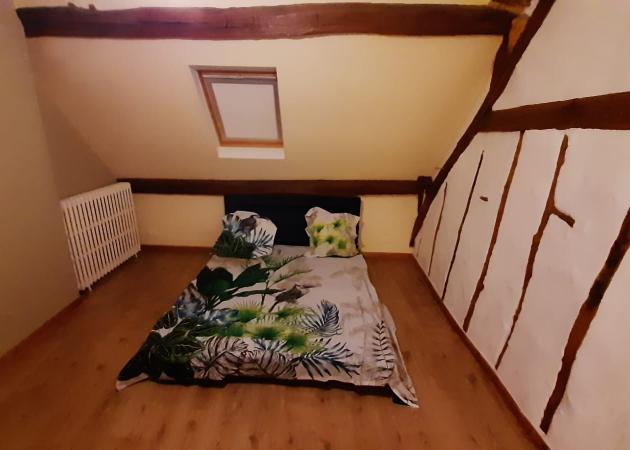 Chaque chambre, contient un lit double (matelas neuf) pour 1 ou 2 personnes. Salle de bain avec douche et WC en commun + salle à manger/cuisine aménagée en commun.