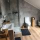 Salle de bain avec douche et toilette indépendantes à la chambre, en commun avec une deuxième chambre