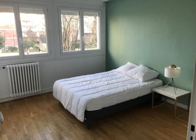Dans un appartement T4 de 84m2 refait à neuf aux Minimes, je vous propose une chambre entièrement meublée et équipée (lit + bureau + placard).