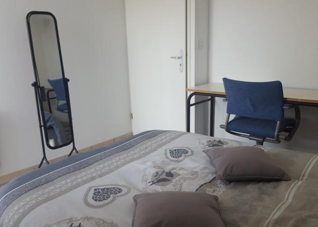 vous disposez d'une chambre de 10 m2 composée d'1 lit de 2 personnes, d'1 bureau et 1 grand placard et 1 penderie.