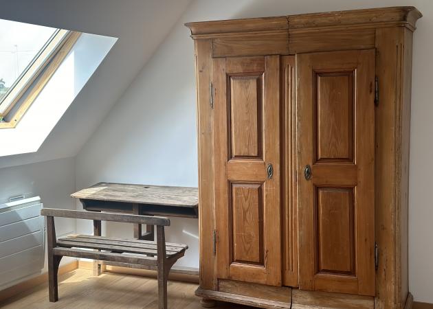 chambre spacieuse, calme, beaucoup de rangements, dans un corps de ferme entièrement rénové, à quelques minutes du centre-ville.