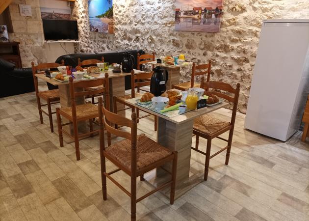 Une salle commune équipée d'un réfrigérateur et d'un four micro-ondes ou nous vous servirons le petit déjeuner pour lequel, le prix est inclus dans le tarif de la nuitée.