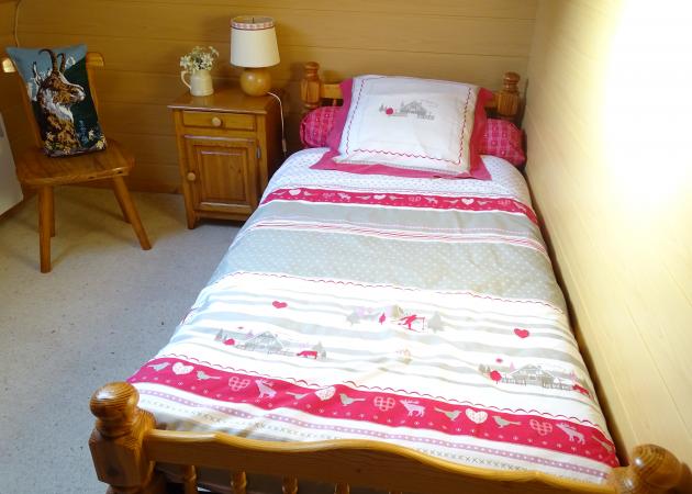Elle vous propose une capacité d’hébergement de 3 personnes au 1 er étage de notre maison ossature bois,chambre à thème : Romantique ( 2 pers. ) - Montagne